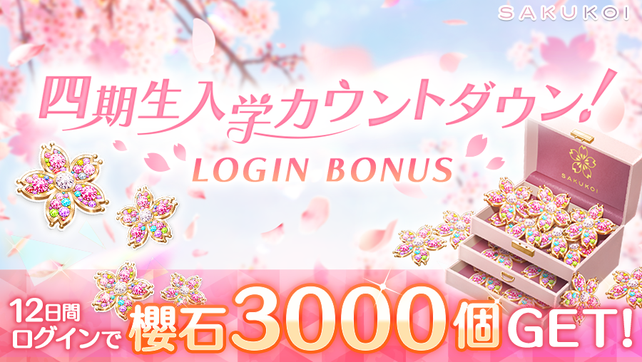 期間中12日間ログインで櫻石3000個を獲得できるログインボーナスを開催!